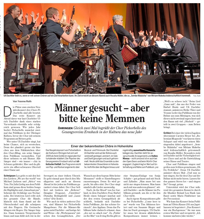 Neujahrskonzert 2026 in der Kultura Öhringen - Bericht aus der Hohenloher Zeitung vom 07.01.2026